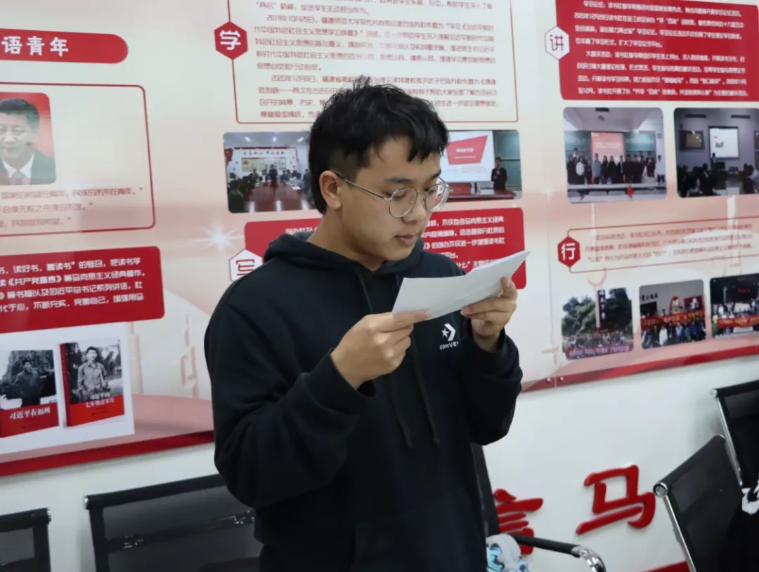 为进一步深入学习中国共产党百年奋斗重大成就和历史经验,深刻感受中国共产党人在中华民族伟大复兴征程中体现出的爱国情怀、高尚品格和精神风骨,汲取奋进力量,校习近平新时代中国特色社会主义思想读书社于2021年11月16日晚在连江校区自强楼114活动室开展读书沙龙活动。beat365中文唯一官网陈阳老师、叶陈钦老师以及读书社第五小组全体社员共40多人参加此次活动。活动由叶陈钦老师主持。