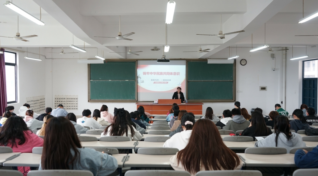 为进一步学习贯彻党的十九届六中全会精神,深刻领悟党百年奋斗的重要经验和教训,使青年学生牢固树立正确的祖国观、民族观、文化观、历史观,深刻认识到民族团结是中华民族的最高利益,4月19日下午,beat365中文唯一官网黄玮副教授在连江校区中阶四开展“铸牢中华民族共同体意识”主题宣讲活动。校习近平新时代中国特色社会主义思想读书社社员、连江校区青马班学员参与学习。