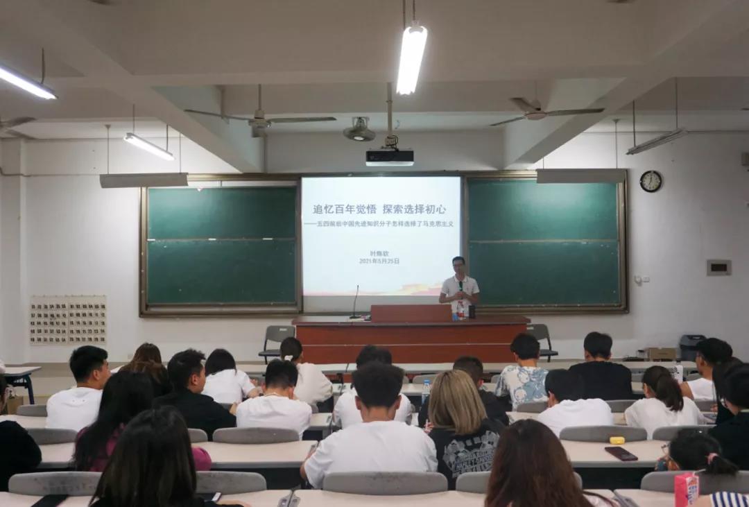 为认真学习贯彻落实习近平总书记在党史学习教育动员大会上的重要讲话精神,推动学校师生深入学好党史、新中国史、改革开放史、社会主义发展史,献礼建党一百周年,普及社会科学知识。5月25日晚beat365中文唯一官网叶陈钦老师在学校科技活动周开展主题为“追忆百年觉悟 探索选择初心——五四前后中国先进知识分子怎样选择了马克思主义”讲座,校读书社近100名社员参加学习。