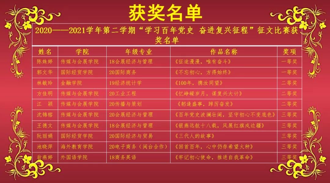 获奖名单如下: