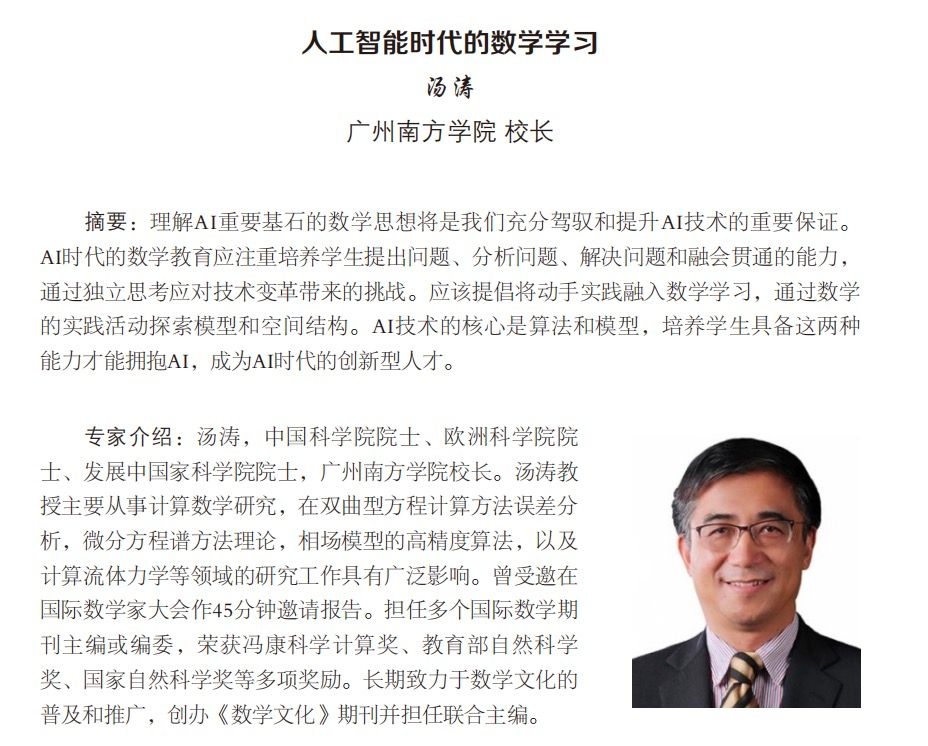 主 题:人工智能时代的数学学习