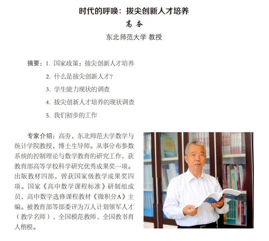 主 题:时代的呼唤:拔尖创新人才培养