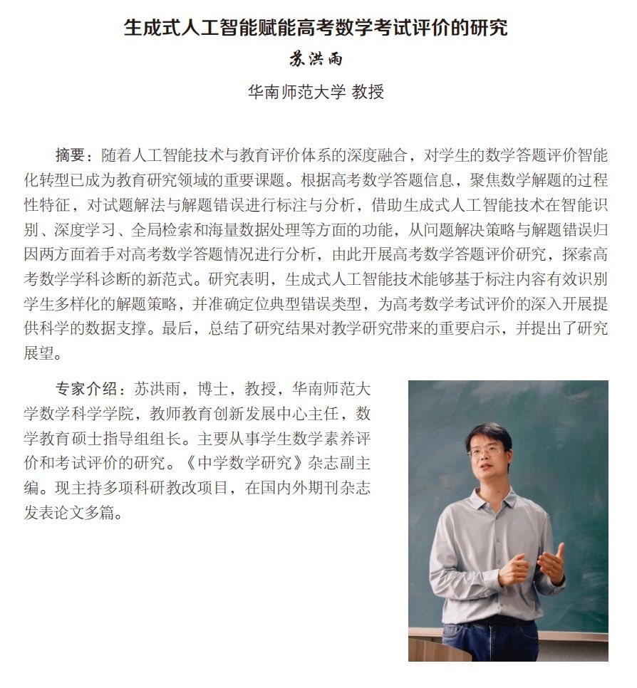 主 题:生成式人工智能赋能高考数学考试评价的研究