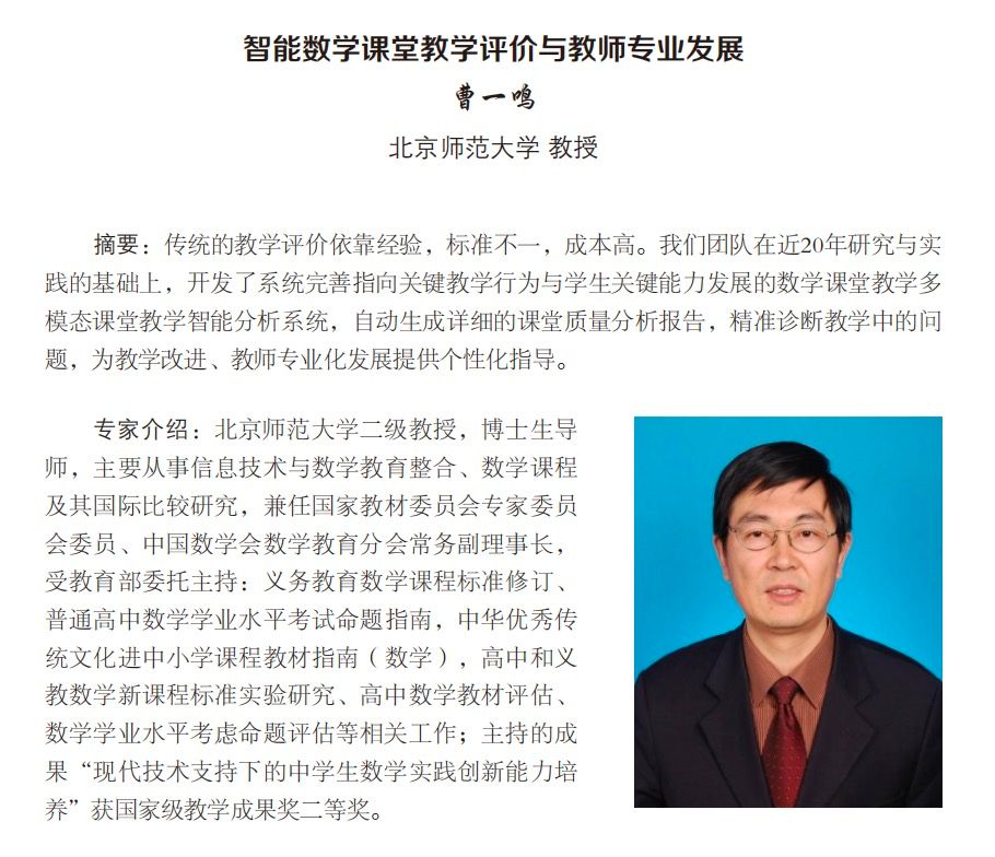 主 题:智能数学课堂教学评价与教师专业发展