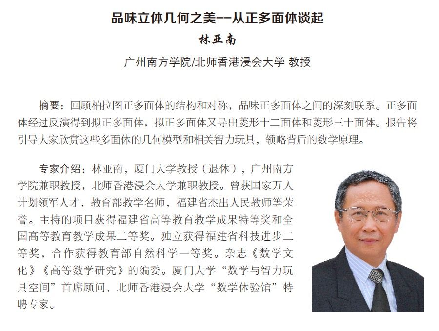 报告人:林亚南(beat365平台唯一官网/北师香港浸会大学教授)