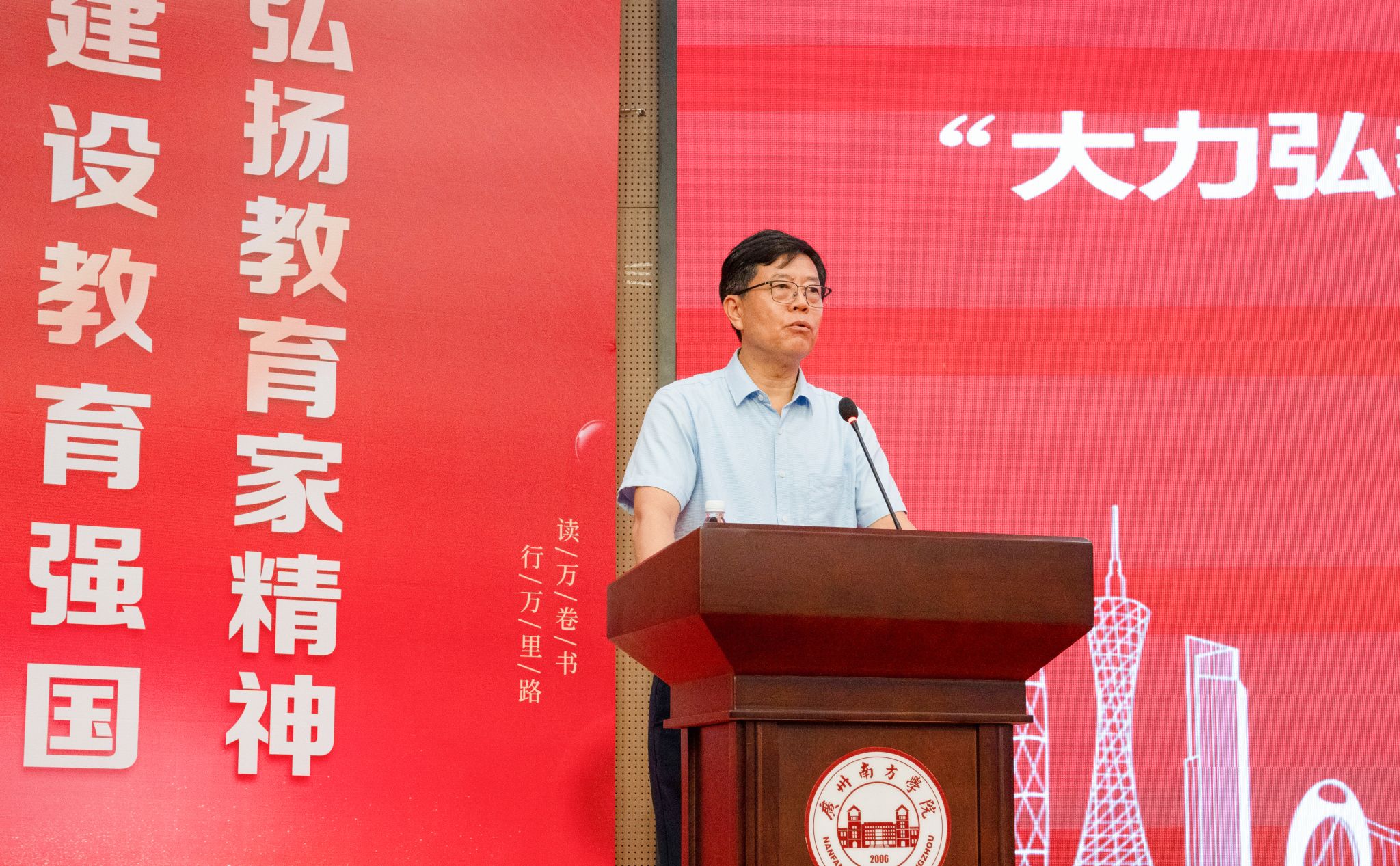 会上,曹广福副校长首先向全校教师致以节日的问候,并向新入职教师表示热烈欢迎。随后,他结合自己多年的从教经历和当前青年教师面临的形势,向大家分享了他个人对教育行业、对教师职业的感受。他指出,南方学院作为位居全国前列的民办高校,有很好的软件条件,有一支优秀的师资队伍,这是学校迈向未来的关键。学校始终坚持立德树人根本任务,在发展中牢牢地将教学摆在中心位置,他希望新入职教师尽快完成角色转换,把做好教学工作作为事业的追求。他表示,当前学校在不断改善硬件条件,优化校园环境,为师生提供更好的工作、学习以及生活环境。他相信在大家的共同努力下,全体教职工不忘初心,一定可以把南方学院建设成为国内一流的应用型高校。