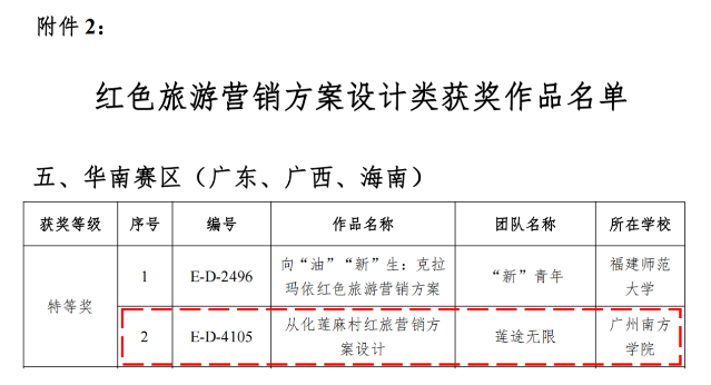 近日,由文化和旅游部资源开发司、国家发展改革委员会发展司、中国旅游协会旅游教育分会等单位联合举办的“第十四届全国大学生红色旅游创意策划大赛”决赛在新疆生产建设兵团第八师石河子市圆满落幕。beat365公共管理学院文化产业管理专业团队“莲途无限”斩获总决赛二等奖及“红色旅游营销方案设计”初赛特等奖。值得注意的是,beat365是华南赛区入围全国总决赛的唯一民办高校。