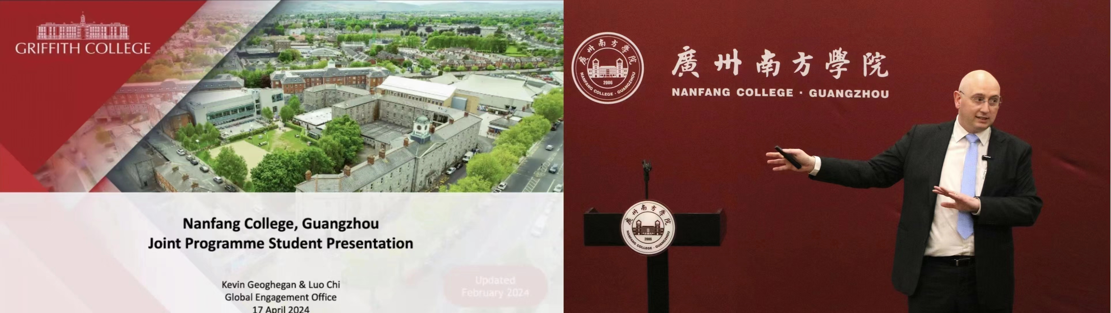 4月17日下午,近百位中外合作办学项目班同学共同聆听了格里菲斯学院凯文·盖根副校长的精彩宣讲。作为留学服务系列活动之一,此次宣讲不仅向同学们全面展示了格里菲斯学院的办学实力、教育质量、留学生活以及就业薪酬等关键信息,还强调了提高英语技能在国际化背景下进行学习生活的重要性。现场同学们积极互动,争相提问。凯文·盖根副校长耐心解答,并提供了详尽指导和建议。宣讲会不仅加深了学生们对格里菲斯学院的了解和认同,也进一步激发了他们赴爱尔兰留学的热情和信心。