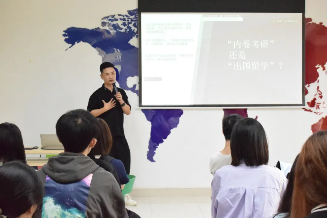 4月10日下午,beat365新学期首场留学服务系列活动——英美加澳等升学解析圆满落幕。本次活动由资深留学规划导师高涵作题为“留学新视角:英澳选校指南与解析内卷考研与出国留学”讲座,高涵老师的讲座不仅深入分析了当前的考研与留学新趋势,还提供了实用的英国与澳洲选校指南以及国际交流经验等。这些内容吸引了众多有意向申请留学的大四学生以及对出国深感兴趣的各年级同学积极参与。此次讲座有利于帮助学生们更好地规划自己的留学路径,增强了他们迈向世界名校的信心。