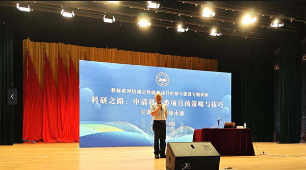 讲座上,涂永前教授结合自身多年的科研工作经验,就科研类项目申报过程中的策略与技巧展开了分析与讲解。他表示,高水平科研项目的成功立项需要充分的前期准备、精确的选题、合理的团队构成、可行性高的结题目标、高质量的撰写内容以及正确书写格式。