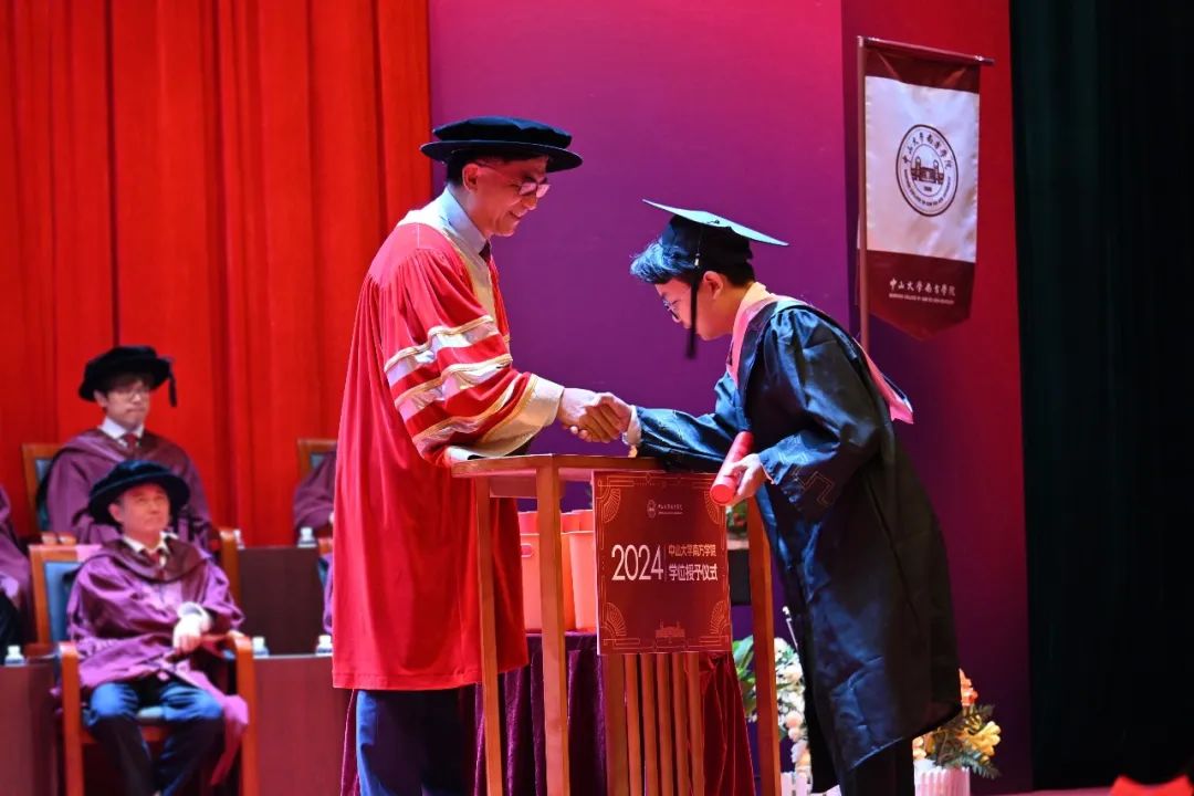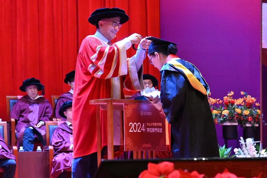 校学位评定委员会主席、校长汤涛院士为2024届毕业生依次授予学位。鞠躬、接册,拨穗、礼成,刹那青春时光涌现,拨来师长殷殷叮嘱,拨开前路迷途阴霾。