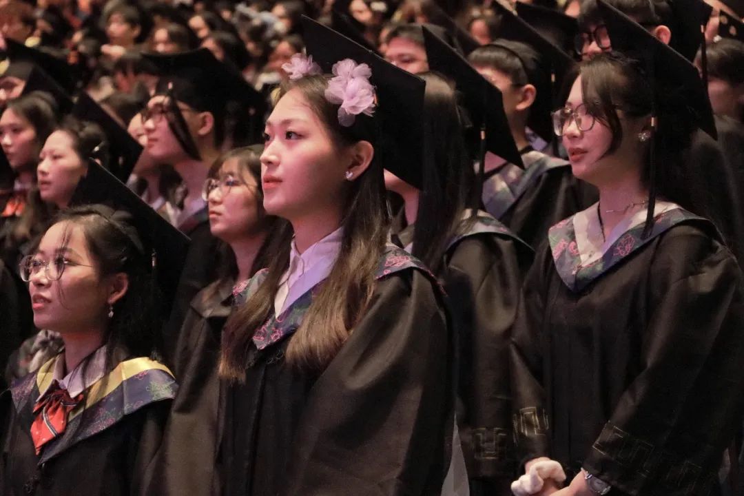 最后,全体毕业生共同唱响校歌,唱尽大学四年的点点滴滴,悠扬婉转的校歌在礼堂久久回荡,学位授予仪式在此刻也圆满落幕。