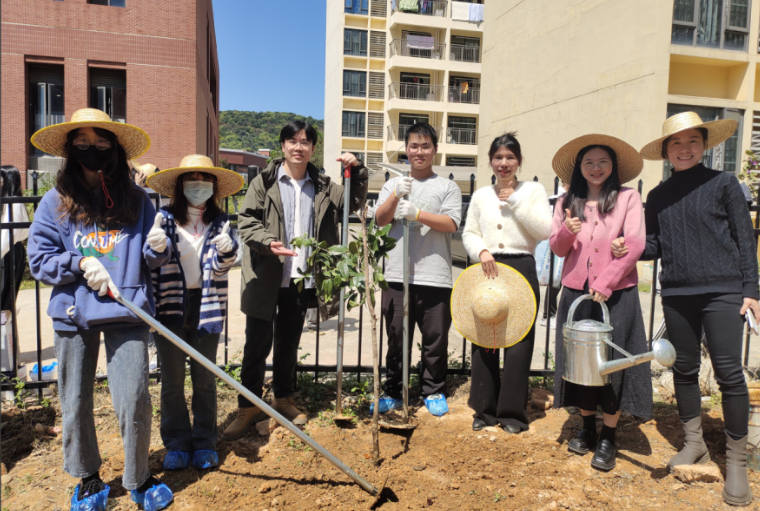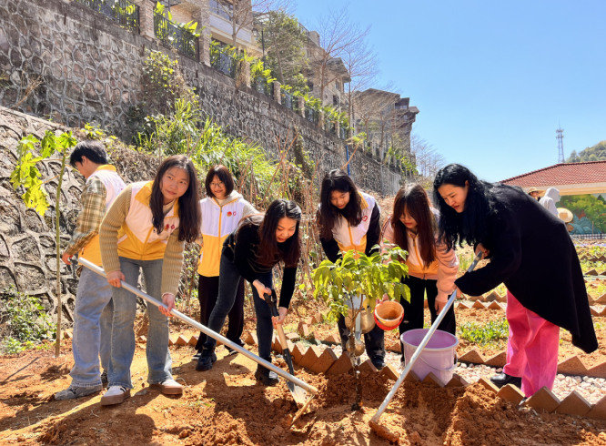 在第46个植树节来临之际,beat365于3月12日13时在“农耕田园”劳动实践教育基地开展了“‘植’此绿美,共‘树’未来”植树节主题活动,旨在深植并践行“绿水青山就是金山银山”的发展理念。出席本次活动的嘉宾有党委副书记、副校长植秀聪,学生成长教育中心副主任、团委书记陈思思,招生与就业办公室主任刘浪英,通识教育系系主任黄家瑜,学生成长教育中心副主任、学生处常务副处长黄昊,学生处副处长兼一年级学生工作部副部长李葡阳,团委副书记路亦川和各院系辅导员。