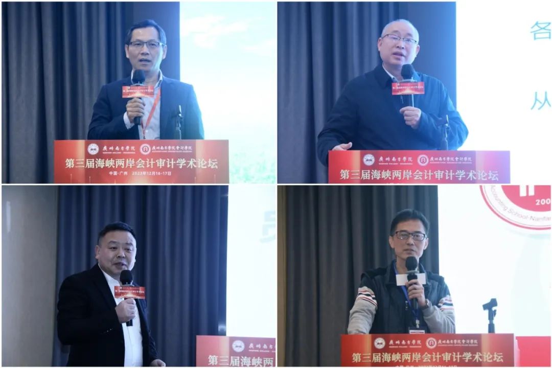 开幕式后,台北商业大学林维珩教授、中南财经政法大学张龙平教授、对外经济贸易大学张新民教授、中山大学林斌教授等4位专家做了第一场主题报告。中国海洋大学李雪教授和广东金融学院秦格教授主持了报告会。