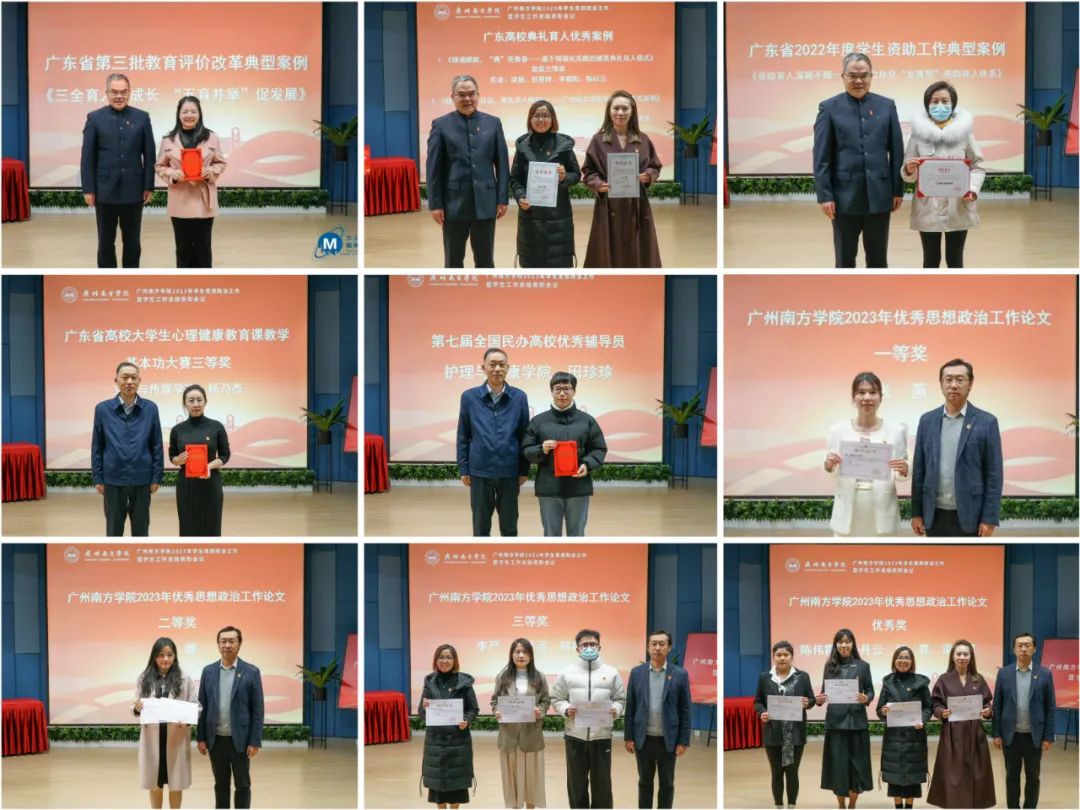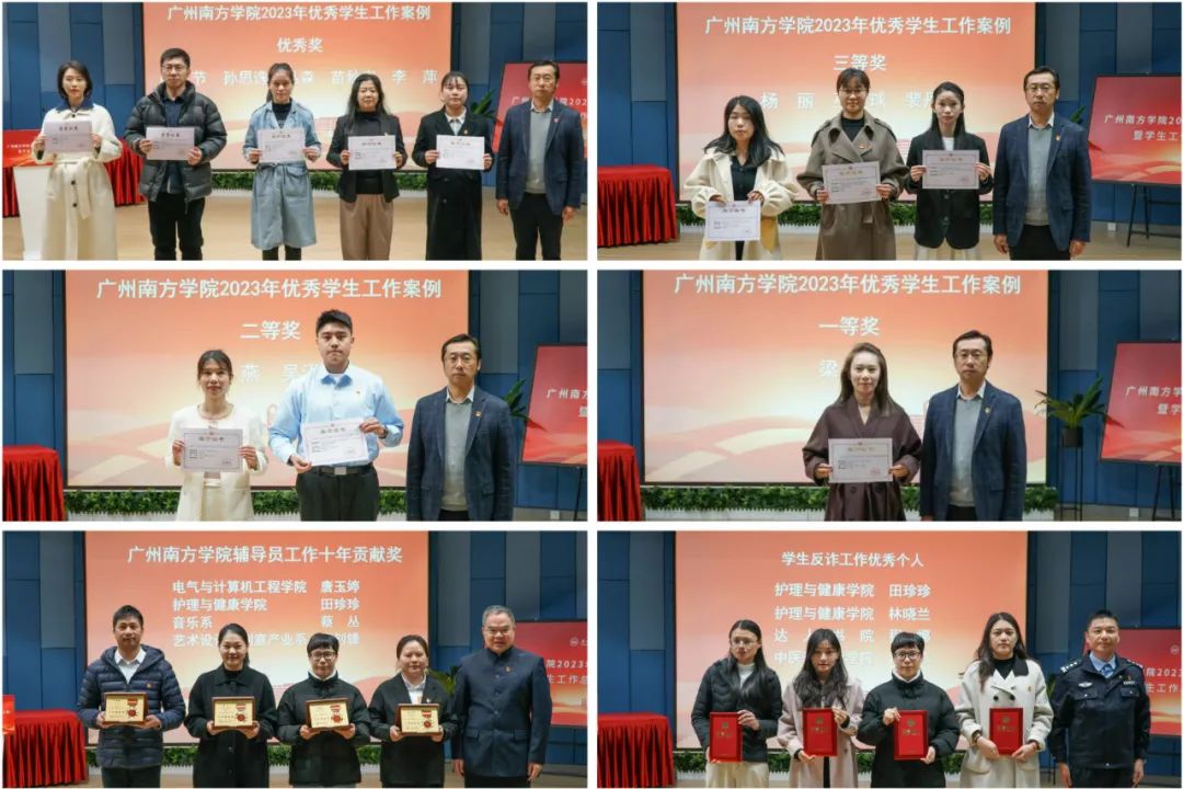 会上,为beat365学工队伍获得广东省第三批教育评价改革典型案例、广东高校典礼育人优秀案例、广东省学生资助工作典型案例,广东省高校大学生心理健康教育课教学基本功大赛,第七届全国民办高校优秀辅导员,学校2023年思想政治工作论文和工作案例、防诈骗工作优秀个人以及辅导员工作十年奉献奖进行了表彰。