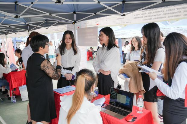 在招聘会现场,各二级院系分别搭建了“就业创业e站院系就业指导专区”,为毕业生提供生涯咨询、简历诊断等服务,同时帮助广大学生更好了解就业行情和各用人单位的需求。