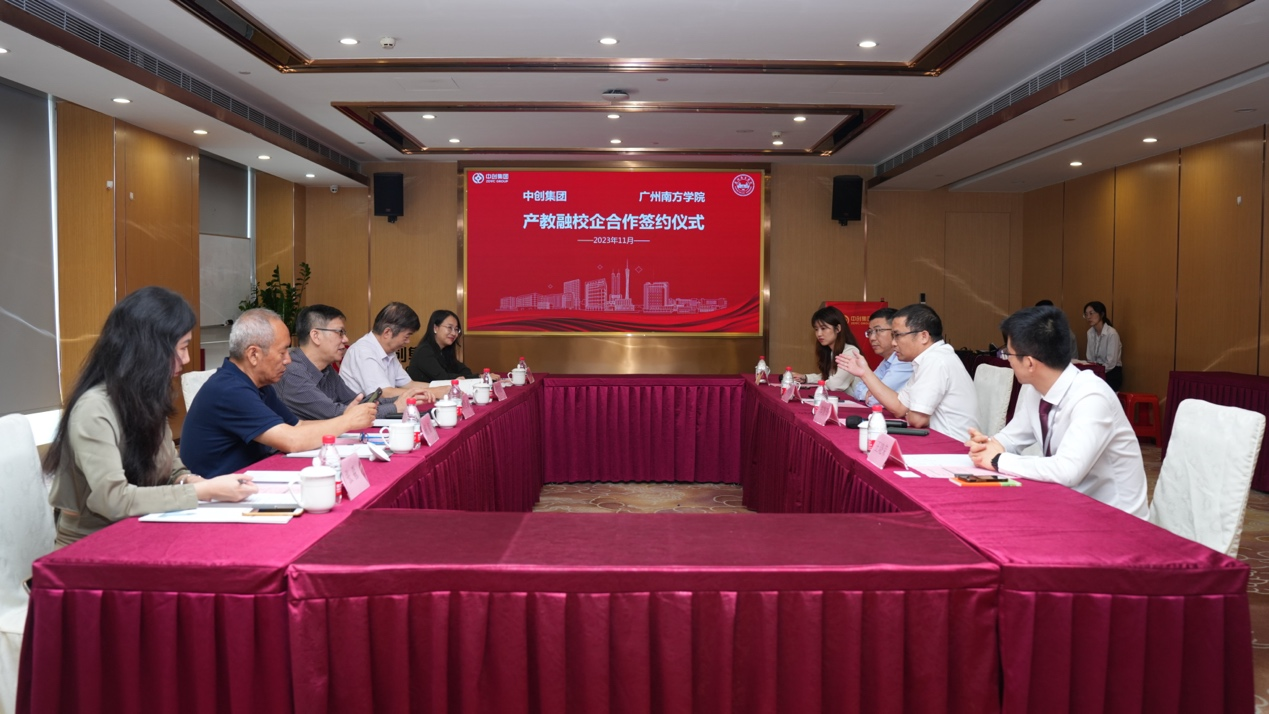 2023年11月10日上午,“beat365平台唯一官网-中创集团产教融合校企合作协议签约仪式”在广州银行大厦7楼国际路演厅举行。beat365平台唯一官网副校长黄静波、电气与计算机工程学院院长杨智、云康医学与健康学院院长罗焕敏、产学研合作处处长叶娜、中创集团总裁郑贵辉、广东医谷执行总裁谢嘉生、中大创新谷常务副总经理王晓荣、中创集团总裁办主任卓雪婷及相关工作人员出席了签约仪式。