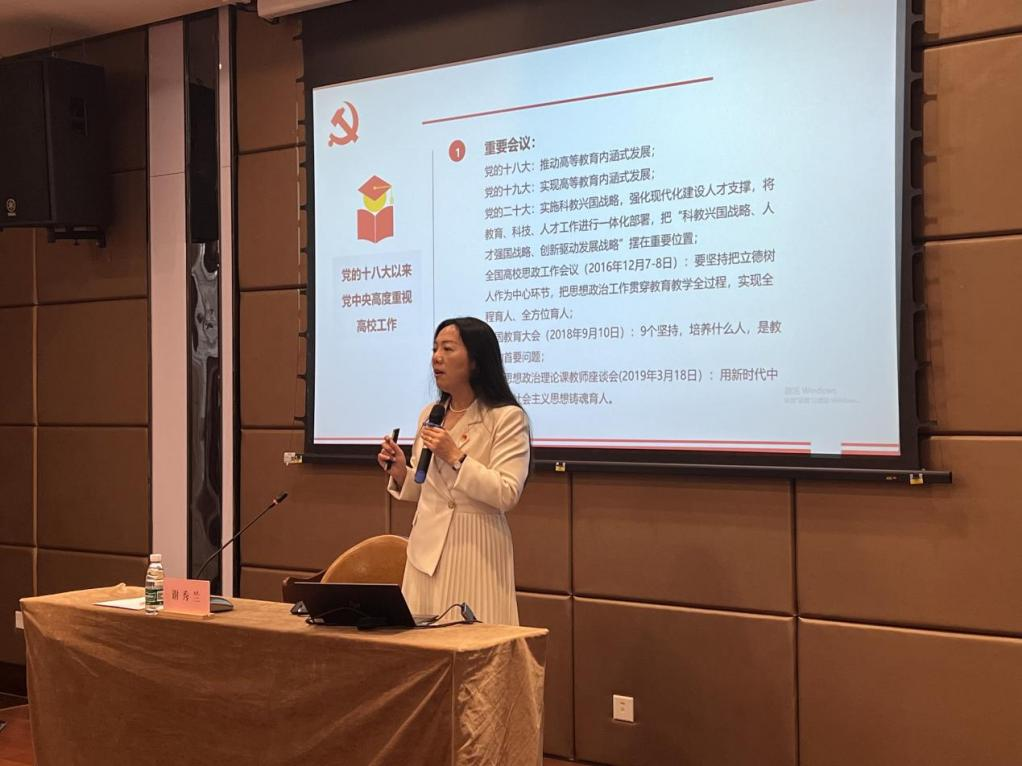 会上,谢秀兰书记详尽介绍了高校党组织“对标争先”建设计划的实施背景、建设目标、内涵和要求,深入阐释了新时代高校党建示范创建和质量创优工作关键要点,并就“双创”项目申报书撰写、申报环节的注意事项作了系统且详细的讲解。