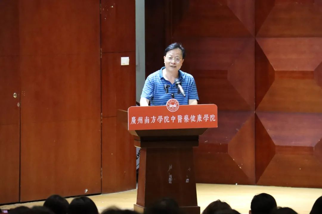 中医药健康学院顾问、广州医科大学原校长王新华教授结合时代对中医药教育事业的发展需求和中医药健康学院的育人目标,与大家一同分析中医药事业的发展前景,以及中医药健康学院所拥有的资源和机遇。他寄语同学们一是要坚定文化自信和中医药自信;二是要增进对学院和专业的认同。首届“紫和班”的开设,为矢志中医药事业的学生搭建了一个传承创新的平台;三是要珍惜大学时光,保持身心健康。引导同学们培养至少一项体育运动和一项文学艺术爱好,受益终身。