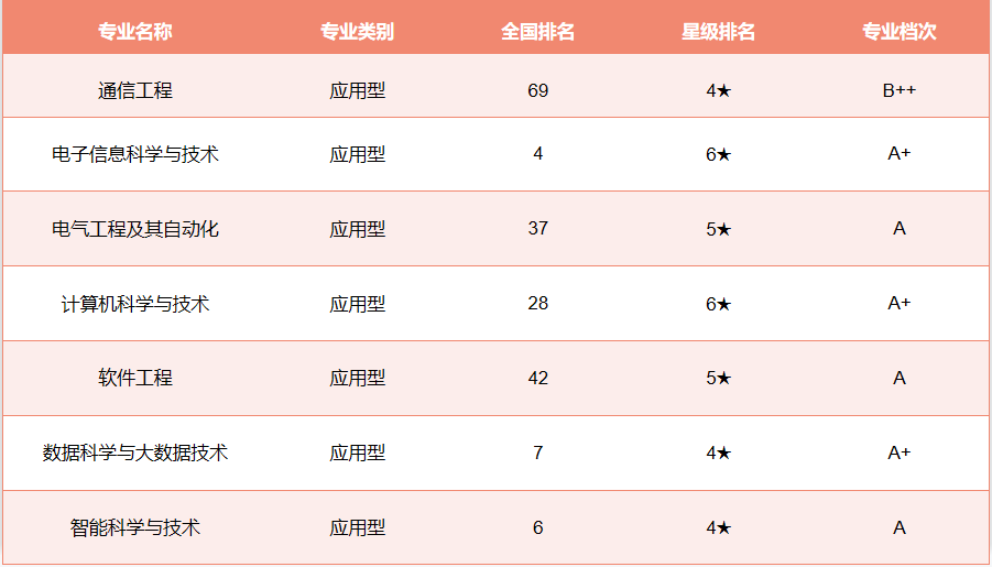 2023年,艾瑞深中国校友会网本科专业排行榜显示,学院电子信息科学与技术、计算机科学与技术为六星级专业,电气工程及其自动化、软件工程为五星级专业,电子信息科学与技术专业、计算机科学与技术专业、数据科学与大数据技术专业学科水平为A+。