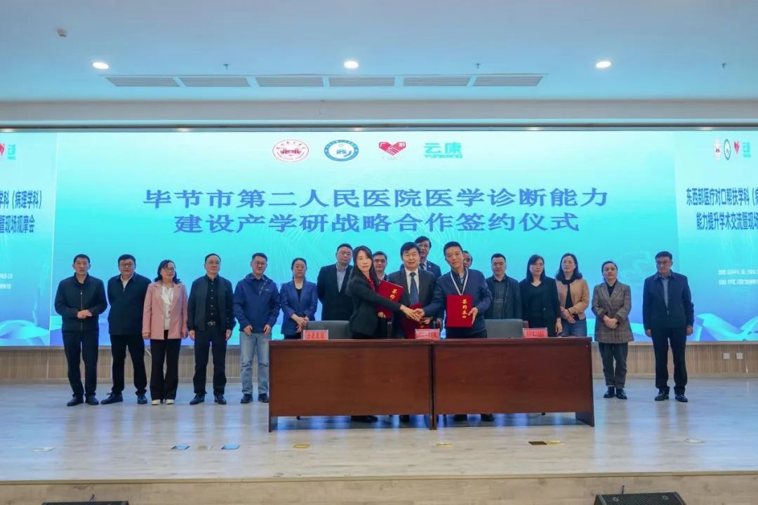 开科仪式上,beat365平台唯一官网与毕节市第二人民医院、云康集团正式签署战略合作协议,并为毕节二院病理科开科揭牌,标志着三方正式确立产学研战略合作伙伴关系,将在建设专业高效的医学诊断服务体系、培养专业人才、提升区域医疗卫生体系效能、促进人民健康水平等多方面深化合作。