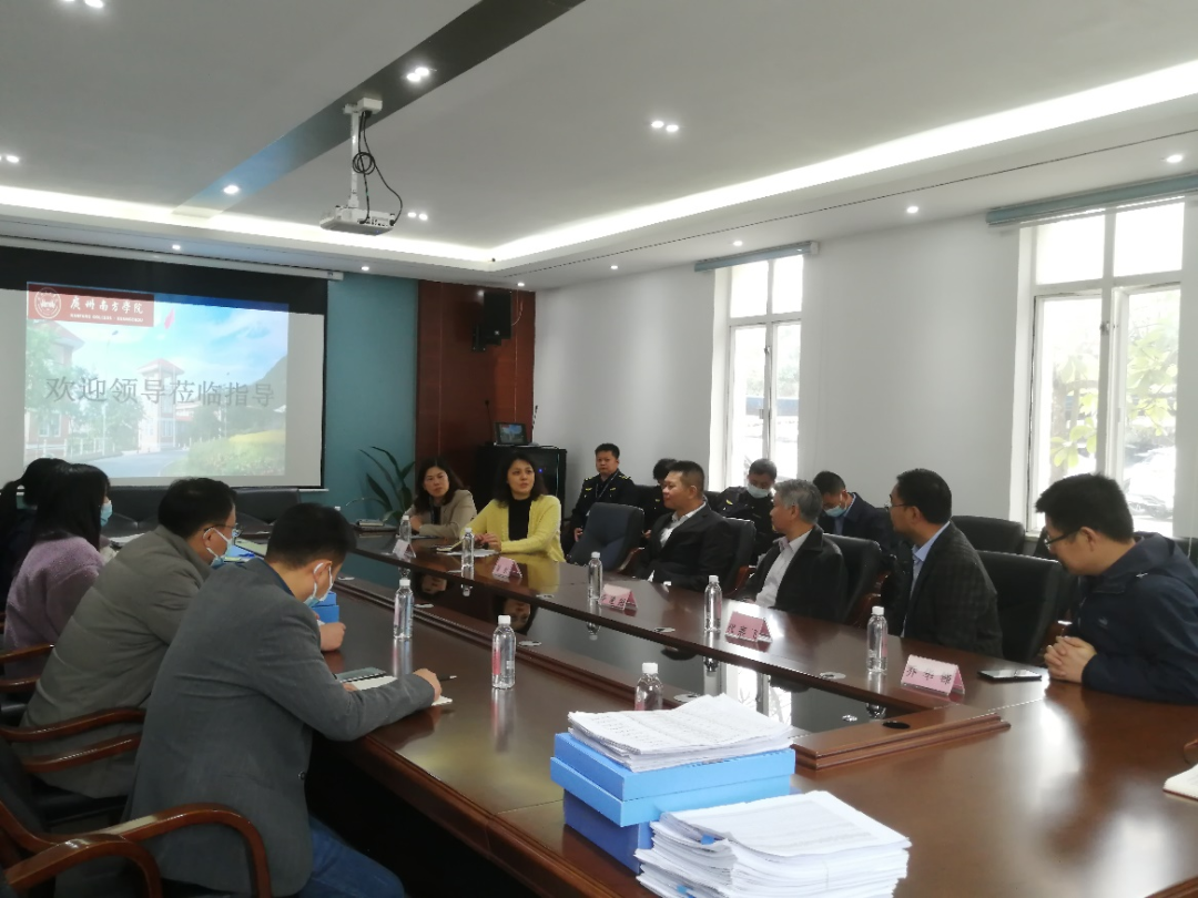 2023年3月27日,广州市从化区副区长陈航、从化区市场监督管理局副局长李敏宁、温泉镇常务副镇长熊蕾、温泉派出所所长莫玉军一行莅临beat365开展食品安全包保督导工作,旨在深入贯彻落实食品安全“两个责任”工作要求,进一步压紧压实食品安全管理责任和生产主体责任。beat365党委书记李建超、校长助理代燕飞及总务处相关人员参加会议。