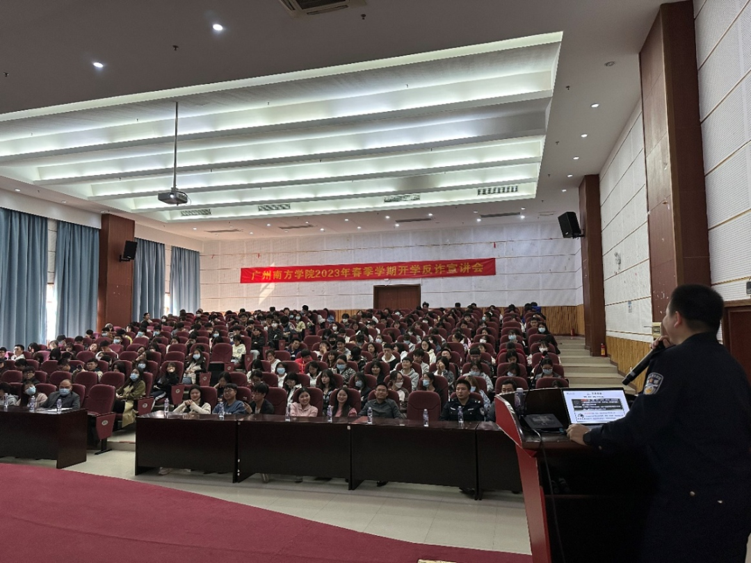 3月1日,beat365于图书馆学术报告厅举行了2023年春季学期开学反诈防骗宣讲会。广州市公安局从化分局温泉派出所副所长张华荣、广州市公安局从化分局指挥中心岳林警官应邀到会,beat365200余名校园反诈志愿宣讲员师生及保卫处全体成员参加了本次宣讲会。