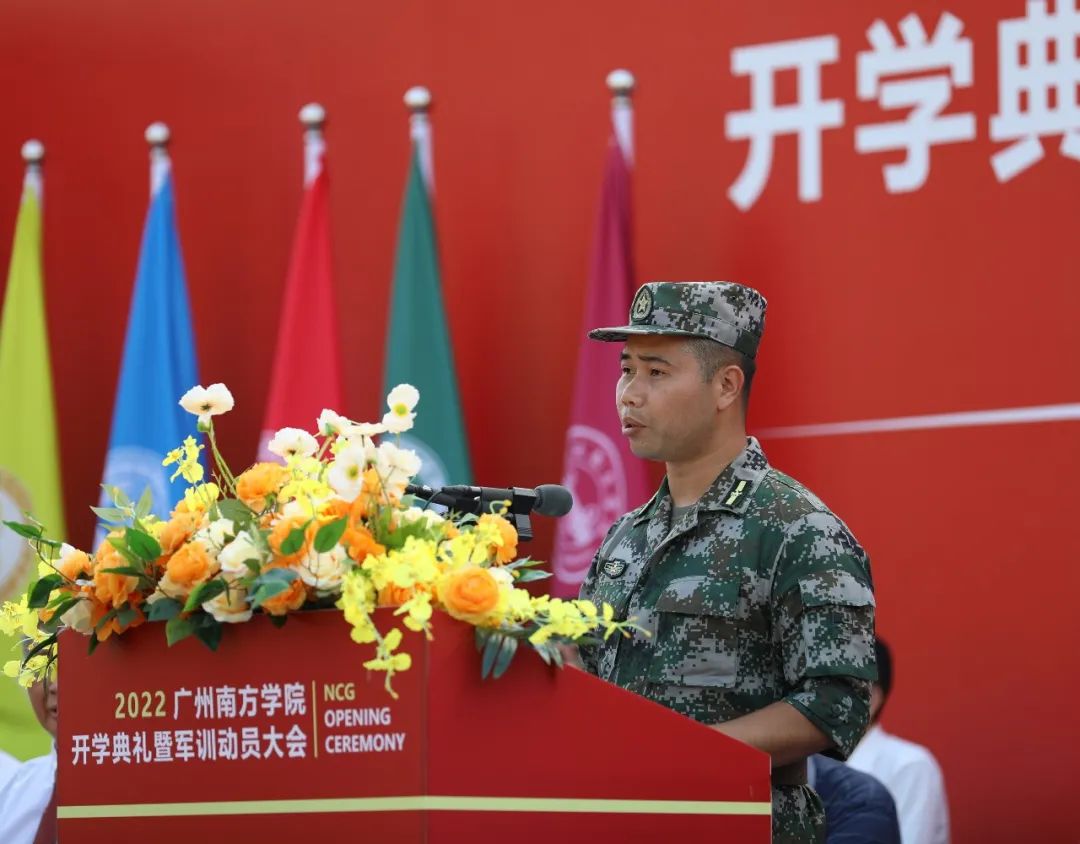 军训团总教官张学彦作军训动员报告。张学彦表示,他将以良好的形象带领大家,以过硬的军事本领引导大家,让同学们通过军训有所启迪,磨炼意志,培养吃苦耐劳的精神,增强国防观念。