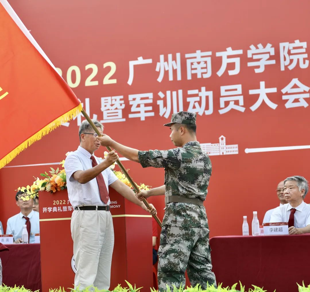 喻世友校长为2022级新生军训团授旗