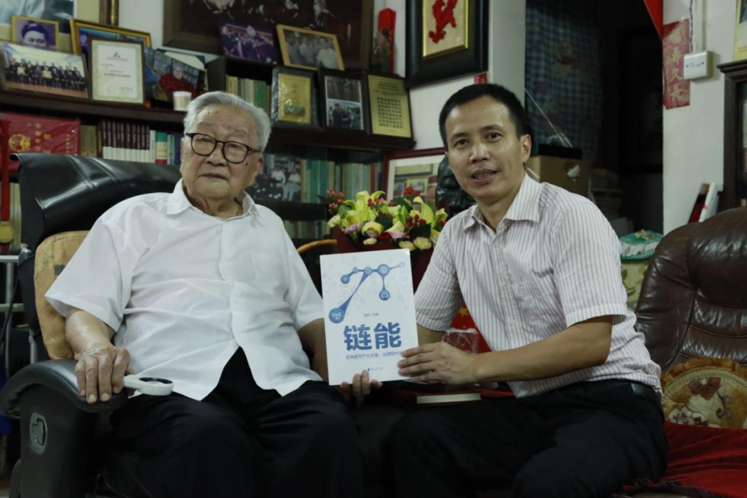 整个拜见过程温馨、活泼,也充满启发。求学和治学路的回忆,让我们感受到了一位百岁人瑞的厚重;对重庆磁器口花生的回味和与史副院长比高,让我们感受到了这位百岁老人的率真可爱;准确识别出《链能》及其与区块链应用的关系,让我们感受到了这位学界泰斗的睿智与对世界大势的“心中有数”;坚持站起来送行,让我们感受到了这位师长对后辈满满的关爱。夏老对“粤有数”和beat365平台唯一官网公共管理学院的关怀和支持,给了我们很大的鼓舞。夏老也永远是我们的旗帜,指引我们办学、治学和育人。