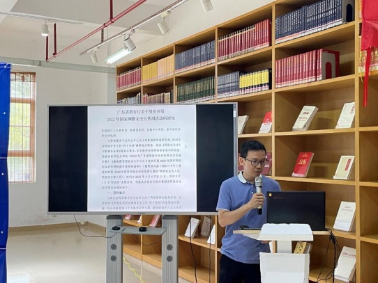 会上,图书馆综合服务科科长邓云生全面传达《广东省教育厅关于组织开展2022年国家网络安全宣传周活动的通知》文件精神,强调网络安全宣传的工作要求,介绍了网络安全宣传周的目标、文化以及具体的宣传活动安排。
