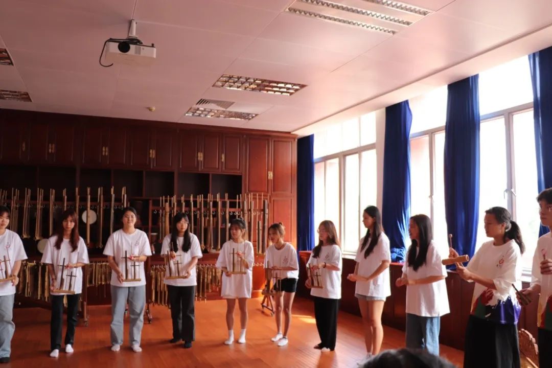 在学校开展美育教育工作的总体要求下,音乐系以“以美育人、以美化人”为指导思想,于6月22日下午15:00在音乐楼成功举办了“艺术美育课程建设与教学改革成果汇报”展示活动。活动不仅展示了岭南传统文化的代表性武术“咏春拳”,具有身体塑形和动作美感的“形体舞蹈”,同时也展示了音乐系重点扶持的特色艺术课程“安格隆”。龚鸣副校长,广东省省级非物质文化遗产“咏春拳”传承人黄念怡师傅,相关职能部门负责人及音乐系的老师们出席了活动。