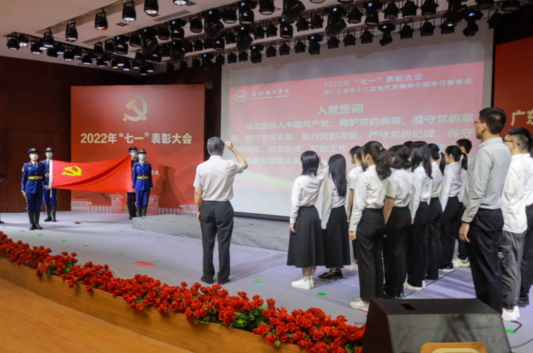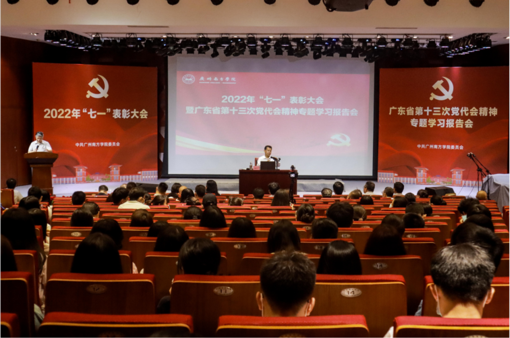 6月29日上午,beat365在音乐厅隆重举行庆祝建党101周年“七一”表彰大会,并邀请到省第十三次党代会精神省委宣讲团成员、广东省社会科学院党组书记郭跃文作专题辅导报告。学校党政班子成员、校长助理、校党委理论学习中心组成员及教师党员代表、学生党员代表,受表彰的先进集体和先进个人代表,新党员代表共400余人参加了会议。会议由常务副校长、党委副书记唐燕同志主持。