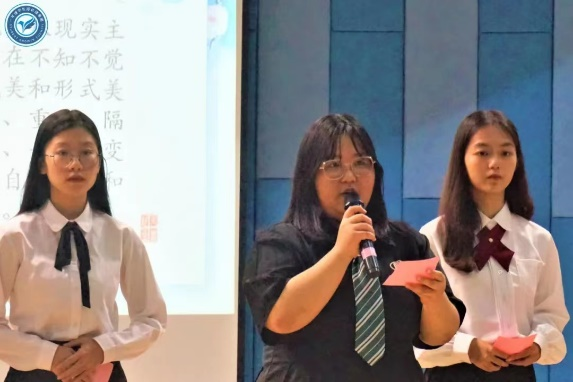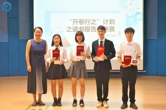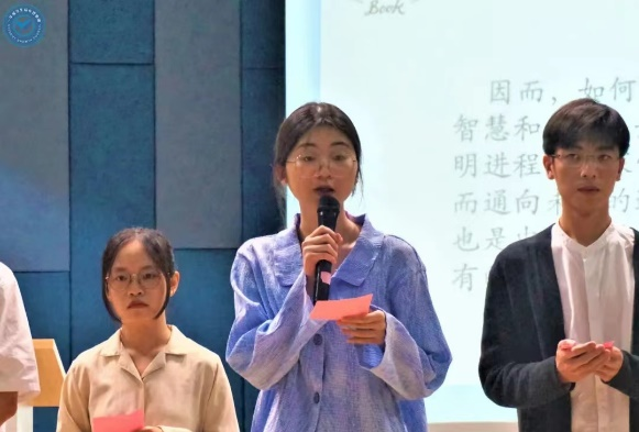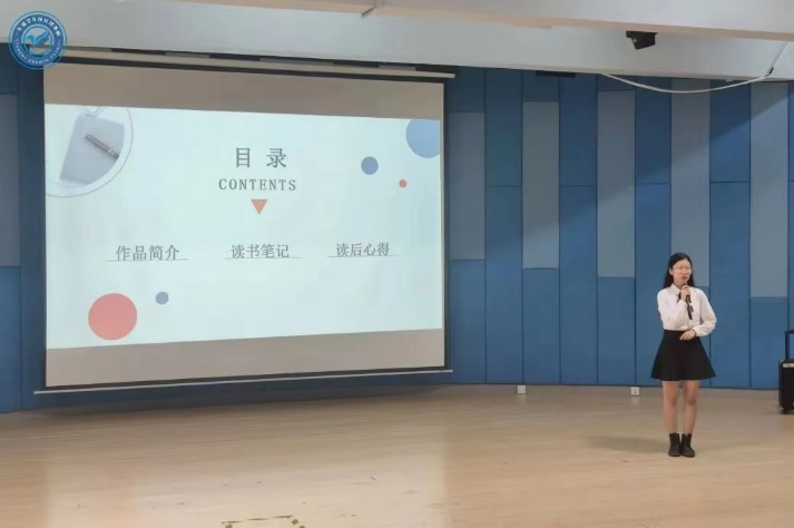 此次进入读书报告会决赛的选手共有13位,他们将以现场汇报的方式分享自己喜欢的书籍和阅读感悟。比赛伊始,现场播放了由校主播团及学生成长理事团共同制作的读书集锦视频作品,聆听了由校主播团刘天旭同学以及全体参赛同学带来的美文朗诵。大家的朗诵铿锵有力,赢得了在场观众的阵阵掌声。