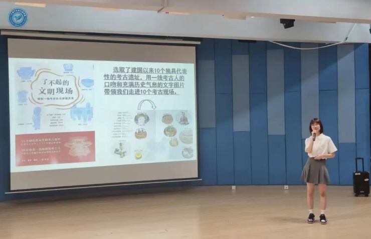 来自文学与传媒学院的朱俐颖同学分享了《了不起的文明现场》,她说道,这本书仿佛带领我们走进一个个考古现场,里面充满了惊喜与意外。