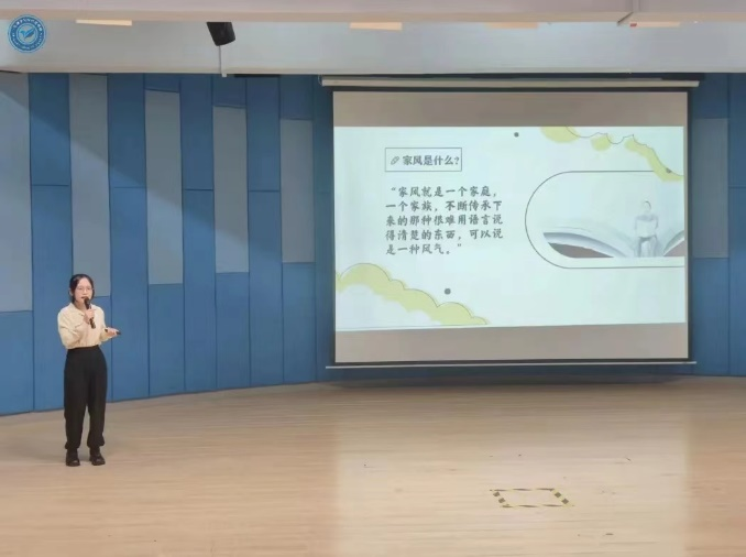 来自公共管理学院的赖键梅同学分享了《家风》,她通过分享书中四个主要内容:是什么、重要性、如何培养、终极问题的探讨,去讲述书籍给她带来的感悟。最后她还强调了弘扬优秀传统文化的重要性。