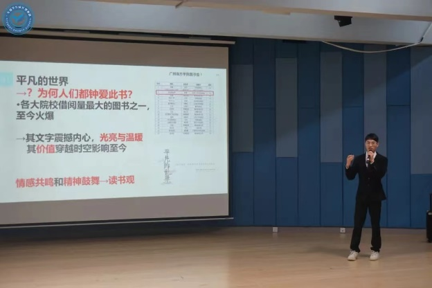 本次比赛有三人分享了《平凡的世界》,他们分别是商学院的余梓恩同学、文学与传媒学院的洪嘉伟同学和王诗璐同学。余梓恩同学讲到这本书最吸引她的是“平凡的人在平凡的生活中也拥有着无限可能”,并且在阅读的过程中也产生了对未来的思考;洪嘉伟同学结合自身经历,讲述《平凡的世界》这本书所传达的观点以及自己阅读书籍后带来的思考,他认为作为大学生的我们,需要阅读各类书籍才能更好地与世界接轨;王诗璐同学感悟最深的则是书中的人情世故与世间冷暖,认识到了平凡人的平凡生活有多么的伟大,这能够让她在努力奋斗的同时提醒自己保持一颗平凡的心。