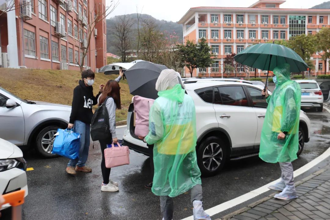 疫情防控之下,极端天气之中,各院系辅导员老师带着志愿者们,冒风雨,送温暖,疏导学生返校人流车流,为学生搬运行李,租用大客车从各站点至宿舍点对点接送返校同学,尽全力保障学生们顺利安全返校。
