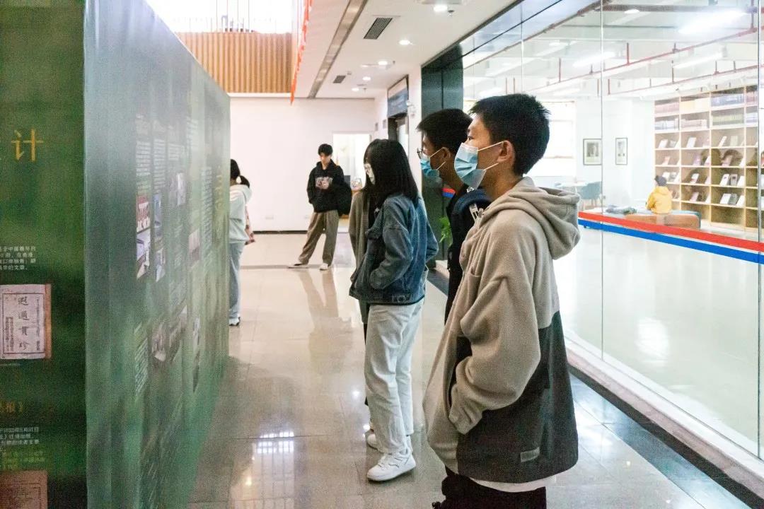 现场同学们认真观看展览