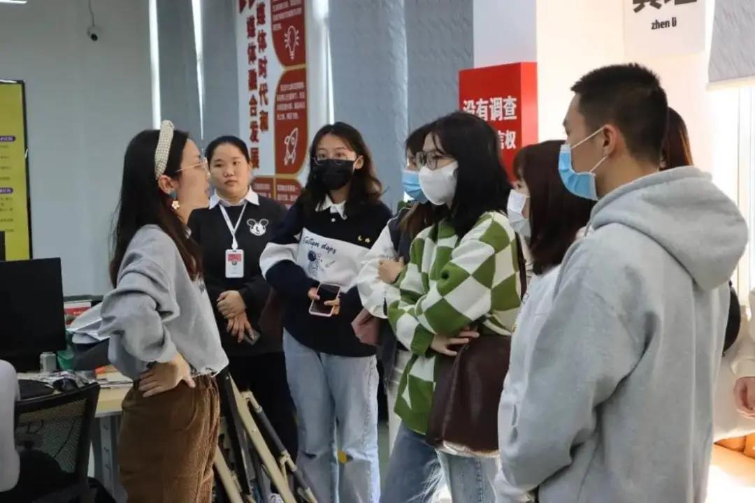 在师生参观期间,beat365艺术设计与创意产业系、文学与传媒学院2021届新入职校友也加入队伍与老师同学们进行畅聊,交流他们的工作现状。