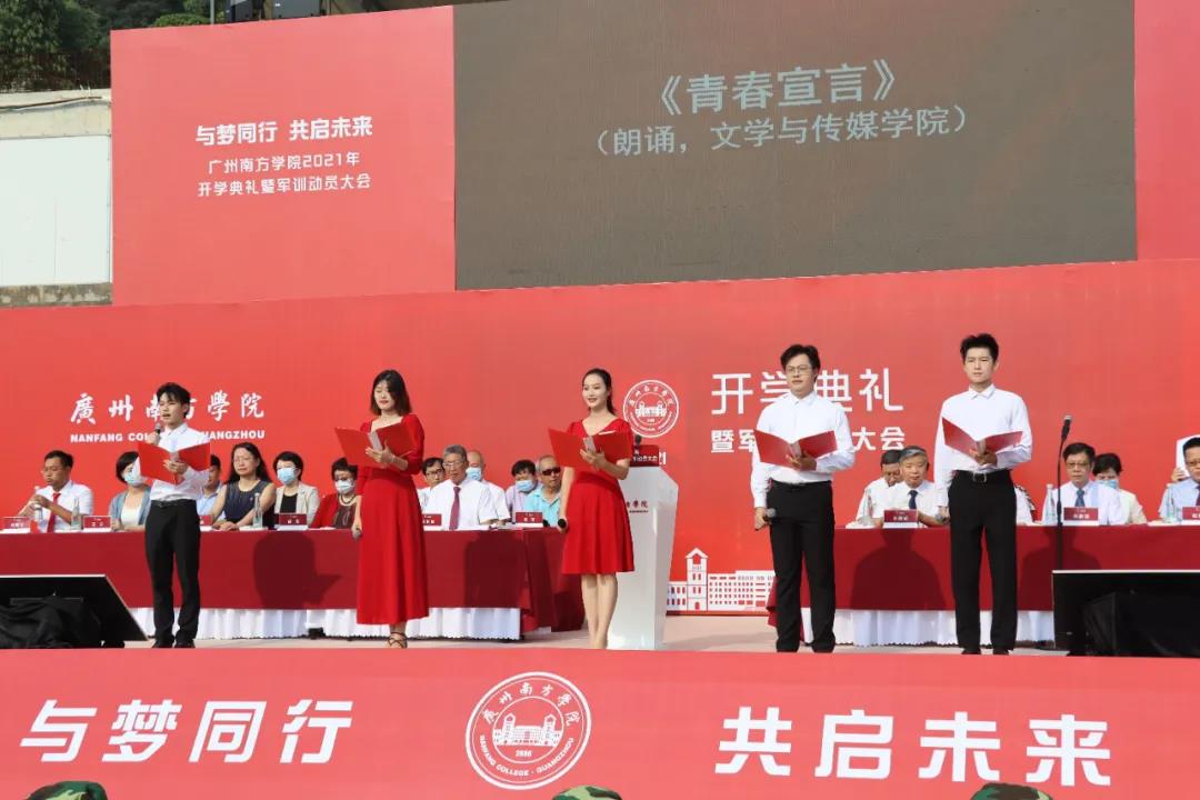 和风飒飒,烈日炎炎。由文学与传媒学院带来的《青春宣言》朗诵慷慨激昂,声声嘹亮激励新生们能在未来的日子里,不负青春韶华,勇担时代使命