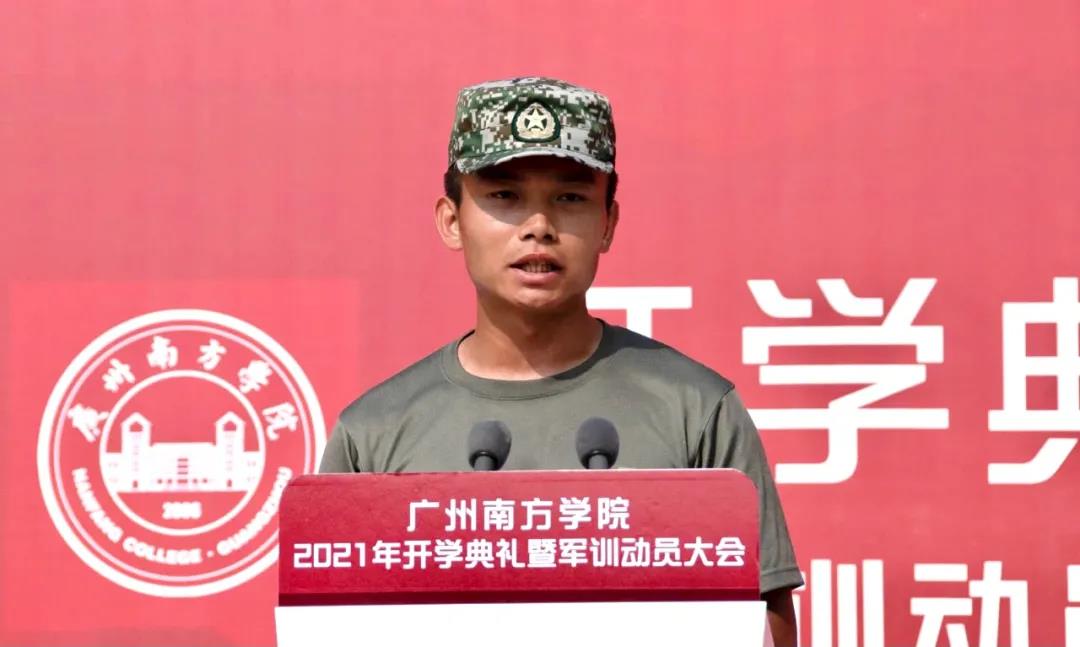 新生军训承训部队教官吴国成承诺:军训期间教官将从自我做起,以良好的军人形象带领大家,以过硬的军事本领引导大家,让同学们增强集体主义精神和组织纪律观念,磨练意志,培养吃苦耐劳的精神,增强国防观念。