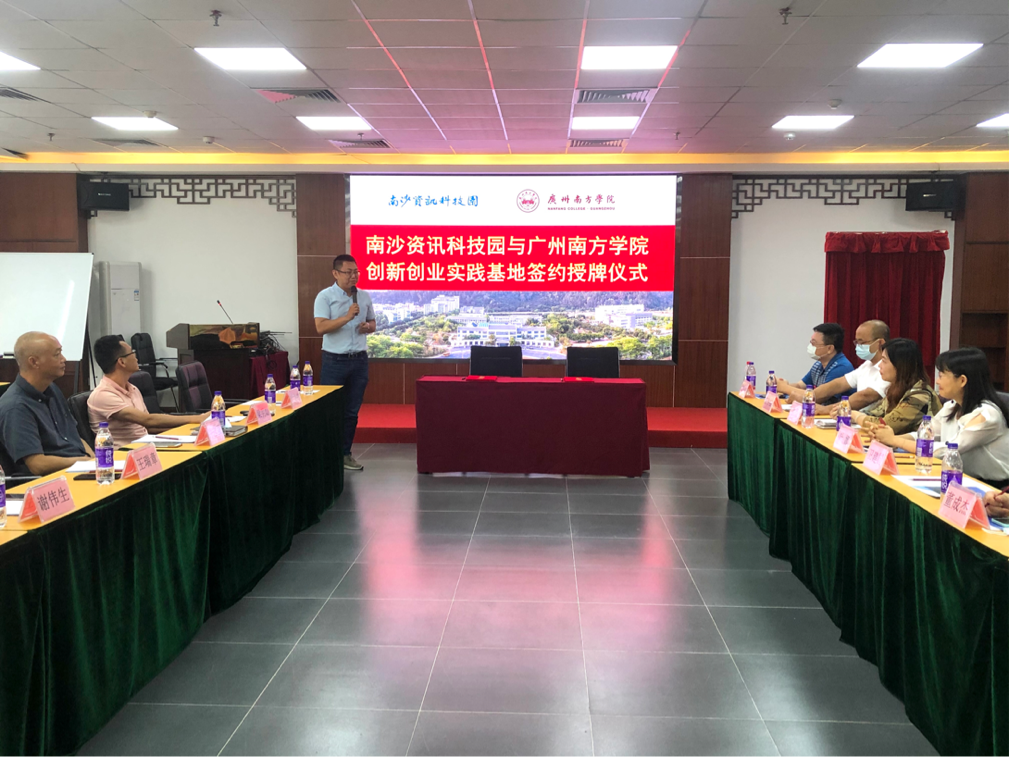 王瑞章总经理对beat365平台唯一官网会计学院师生的到来表示热烈欢迎,对卫建国院长关于创新创业实践教学基地建设的观点表示高度认同,提出愿意为beat365会计学院专业建设提供支持。他介绍了南沙资讯科技园的成立历史、发展过程、目前各个板块的业务等情况,强调了南沙资讯科技园在粤港澳大湾区建设及创新创业型企业培育中的地位、作用及发展前景。他指出,在国家转型、创新创业的大背景下,产教融合、校企合作势在必行。希望与会计学院加强合作,以创新创业实践教学基地为平台,打通产业和教育资源的生态,实现产学研的深度融合。