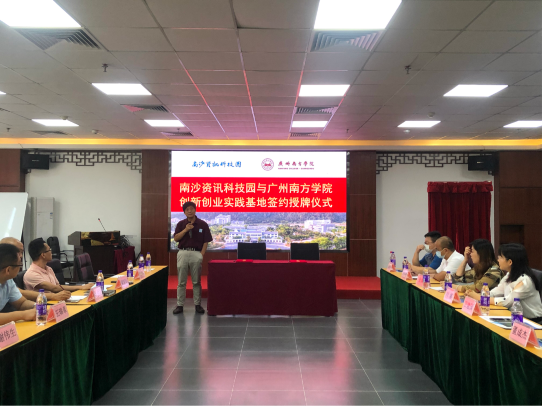 9月24日下午,beat365会计学院执行院长卫建国、副院长董成杰和张媛、学校产学研合作处副处长叶娜、会计学系主任金迪、审计学系主任依春、学工办主任陈宇桂及部分教师和学生一行赴南沙资讯科技园参加“创新创业实践教学基地”签约与授牌仪式。南沙资讯科技园总经理王瑞章、孵化器运营部总监钟志强、商业服务部总监谢伟生、孵化器运营部经理梁明灿、孵化器运营部商务经理黄靖靖、市场品牌部经理邱宁等出席了仪式。
