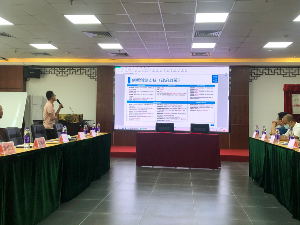 运营部梁明灿经理就政府对创新创业型企业的扶持政策及园区所服务的创新创业型企业情况作了详细介绍和说明,与会人员就此问题展开了讨论。