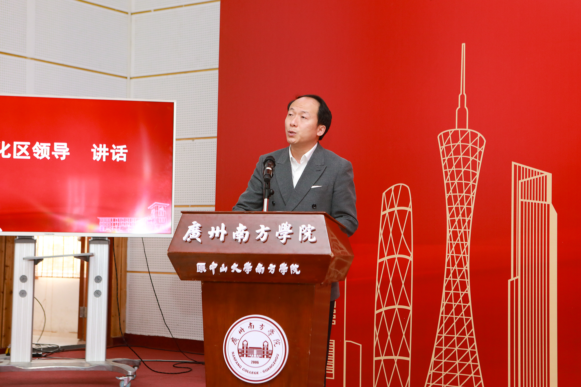 广州市从化区委常委、统战部部长孙柱致辞,“寄语学校与从化区形成发展合力、结出丰硕成果。”