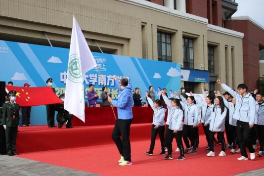12月23日下午,中山大学南方学院2020年师生环校长跑活动在学校综合楼广场鸣笛起跑。校长喻世友,党委书记李建超,常务副校长、副书记唐燕,副校长龚鸣,财务总监刘振宏等校领导和各院系、部门工会近900名师生16支队伍参加此次长跑活动。起跑及颁奖仪式由体育教学中心主任何江海教授主持。