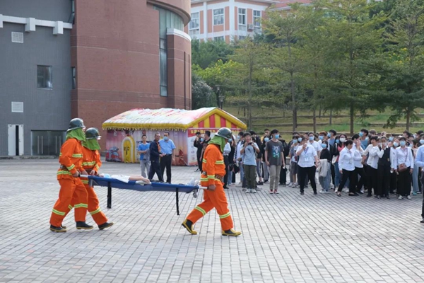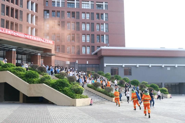 11月18日,在广州市从化区消防救援大队、温泉镇消防中队、江埔街道消防中队的支持下,beat365在综合楼隆重举行2020年秋季学期消防与应急疏散演练活动,以实战检验师生消防应急、紧急疏散能力。全校师生代表、驻校合作单位代表、校内商户代表1000余人参加了本次活动。