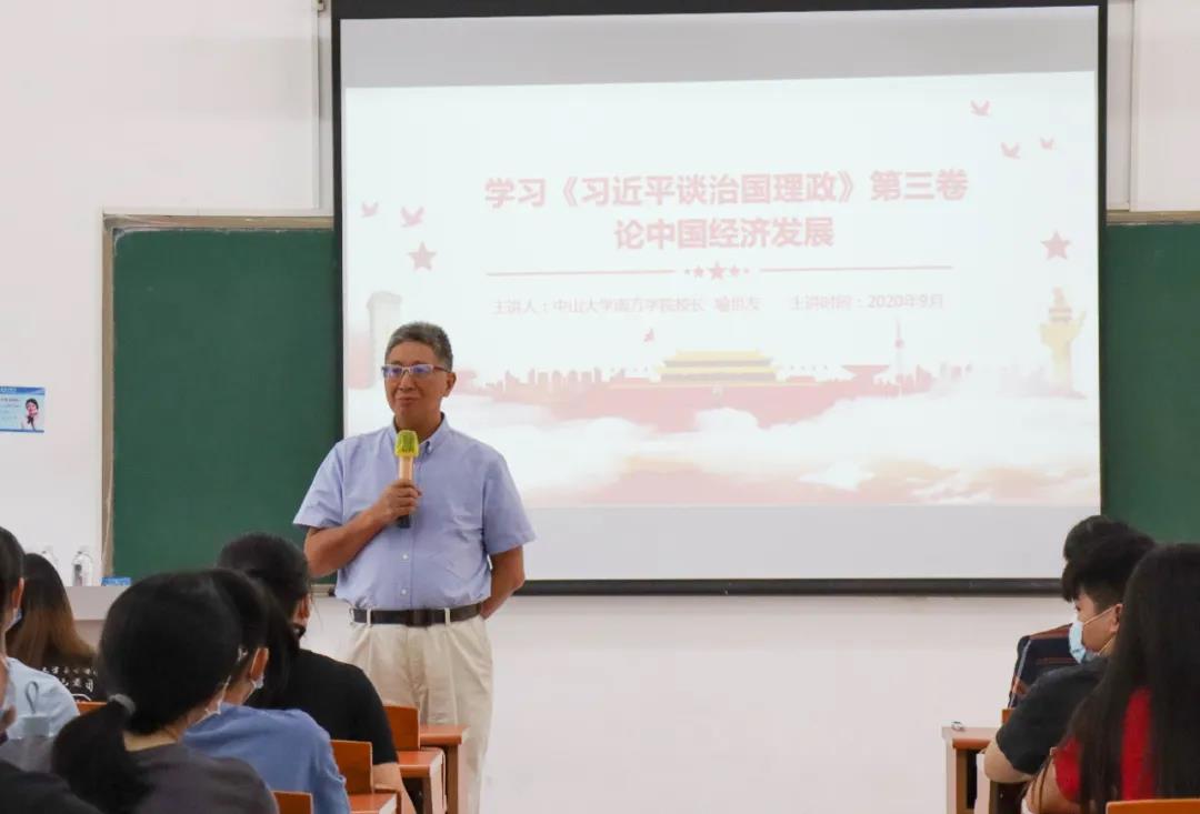 为加强学校思想政治理论课建设,2020年9月25日上午,喻世友校长在7教304室讲授校长第一堂思想政治理论课,主题为“学习《习近平谈治国理政》第三卷—论中国经济发展”,商学院、电气工程与计算机学院学生,马克思主义学院部分教师等一百余人参加。