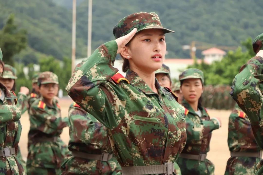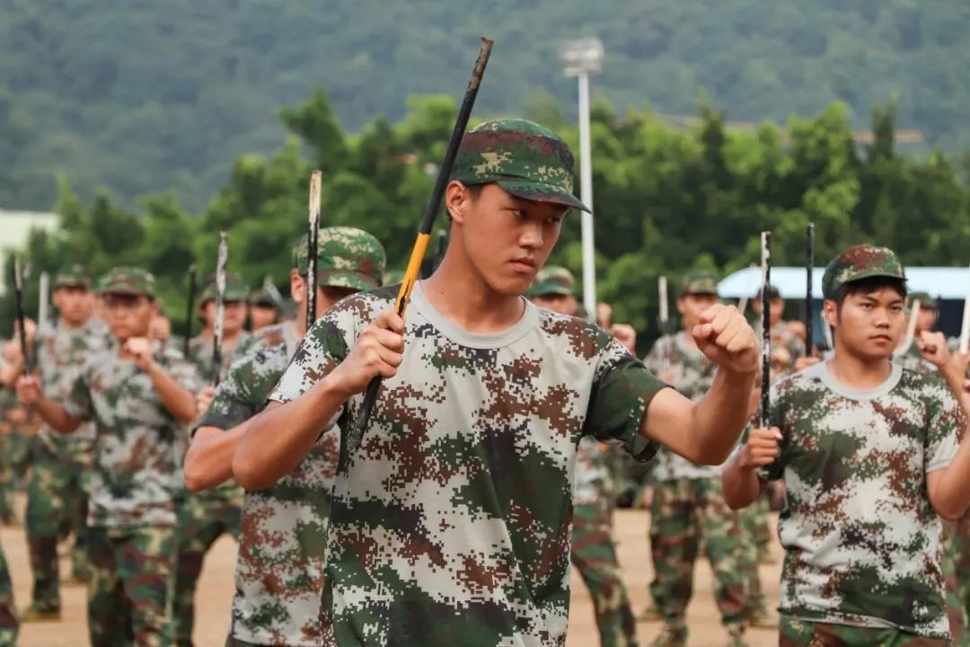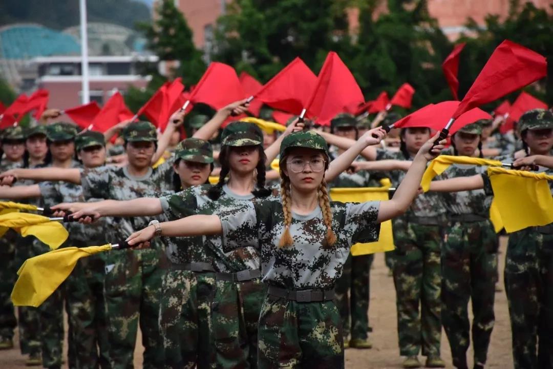 随后的军训科目汇报表演中,组成旗语和匕首操方阵的数百名女同学,步伐矫健,英姿飒爽,激荡着青春活力;